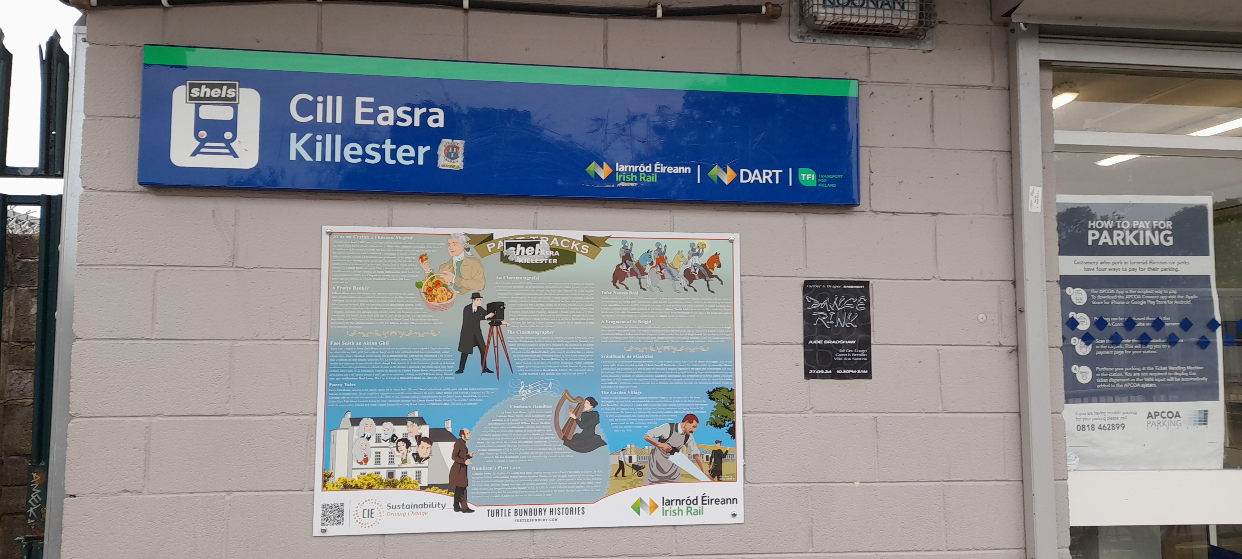 Having arrived in Dublin on the 12th of October, in order to attend the unveiling of the plaque for Hamilton on the 16th, in the meantime we wanted to photograph some for me missing pages of the indexes of Hamilton correspondences at Trinity College Library, and hoped to find some more information about Lady Hamilton’s last years in ‘Bloomfield retreat’. One of the things we did on the 13th was go to Killester station by train, to see if Turtle’s panel was already hung up at the station.