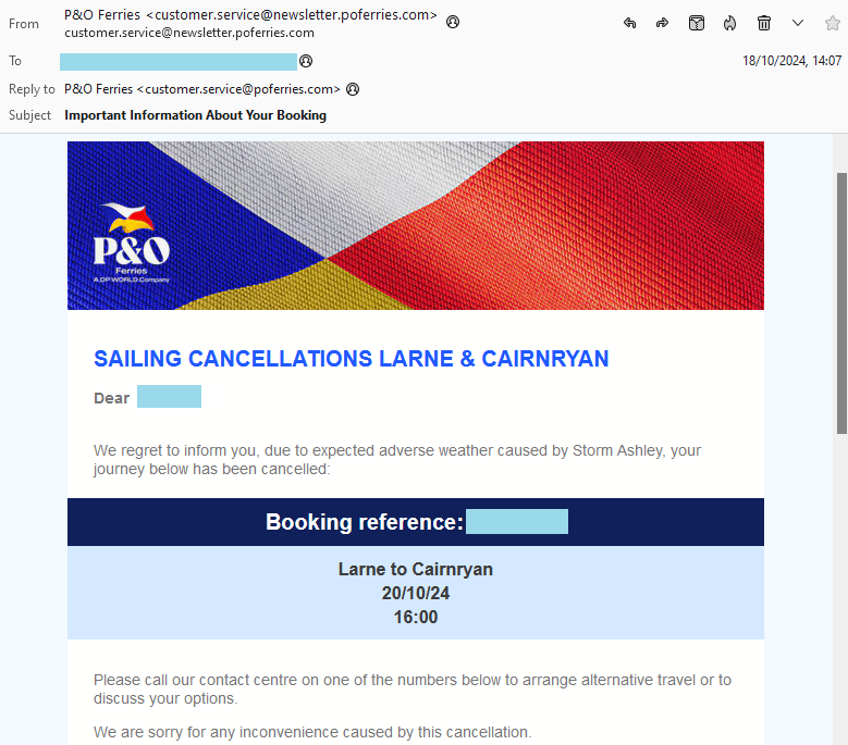 Because the storm Ashley hit on Sunday 20 October, we could not leave Ireland: the planned ferry crossing of the Irish Sea, from Larne to Stranraer, was cancelled. Having booked everything anew (trains, ferries, and hotels), we suddenly had a day left.