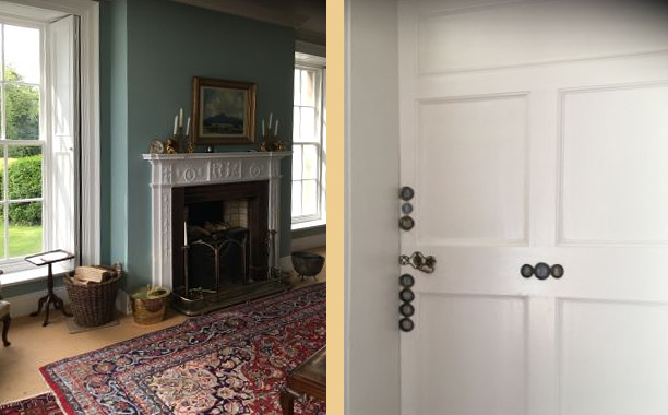 There are more parts of the house which still are original, which means that Catherine knew them; for instance the hearth in the blue room, and a door with cameo inserts at the top of the stairs,